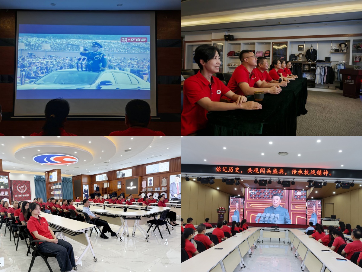 觀(guān)看現場(chǎng),員工們統一著(zhù)裝,神情莊重,全場(chǎng)洋溢著(zhù)熱烈而又莊嚴的氛圍。當氣勢恢宏的閱兵場(chǎng)面出現時(shí),會(huì )場(chǎng)多次爆發(fā)出熱烈的掌聲和贊嘆。